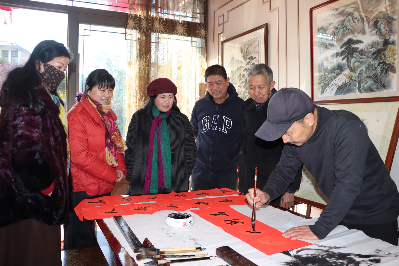 “我从两个月前就开始忙着画马了,现在还帮着大家写马年对联。看大家都这么起劲,我干脆把这么多年的马主题雕刻作品也拿出来供大家欣赏。”马若琦高兴地说,他与马结缘有40多年,这么多年来免费送给乡亲们的马画与马雕作品有200多件,仅当下这一阶段就送出了10来幅,感觉特别有年味。