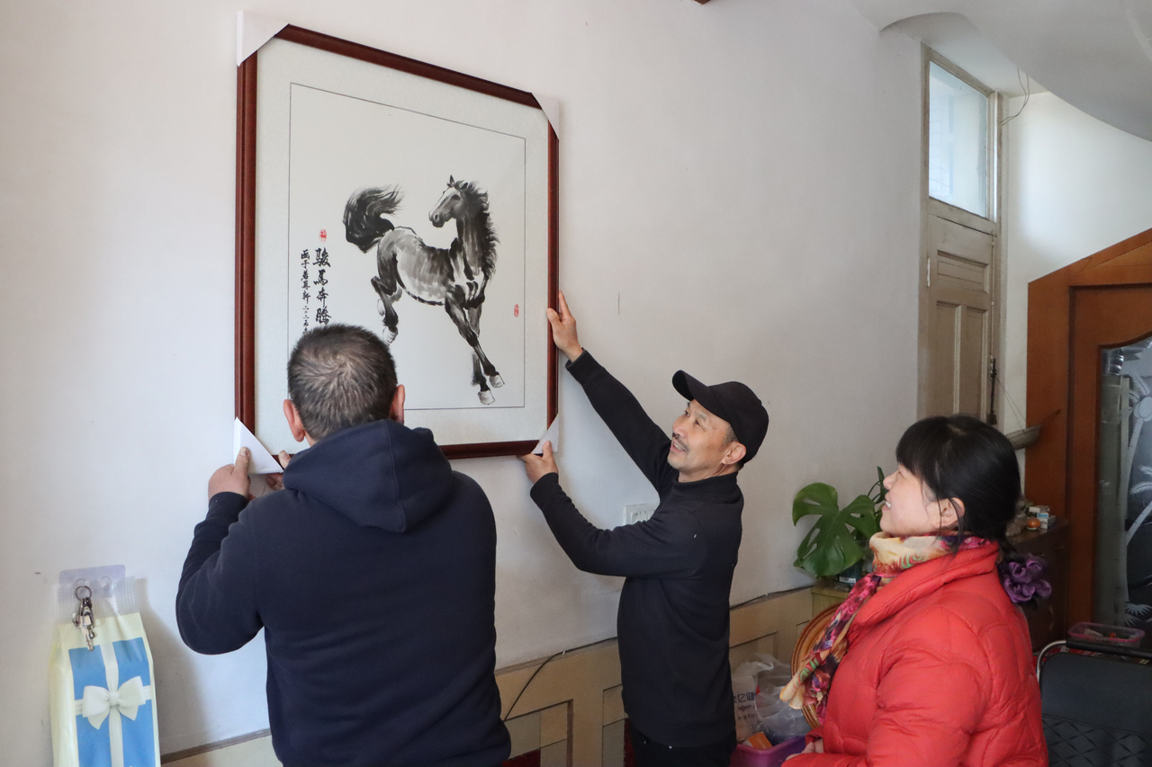 “他很擅长马主题的木雕与水墨画,一匹匹马经他之手,都变得栩栩如生,我真的太喜欢了。”村民王海君说,2026年是丙午马年,马的寓意又特别地好,所以他早在一个多月前就上门求了一幅对尺开的《一马当先》画作,知悉画作已经装裱好了,他赶紧过来运走。