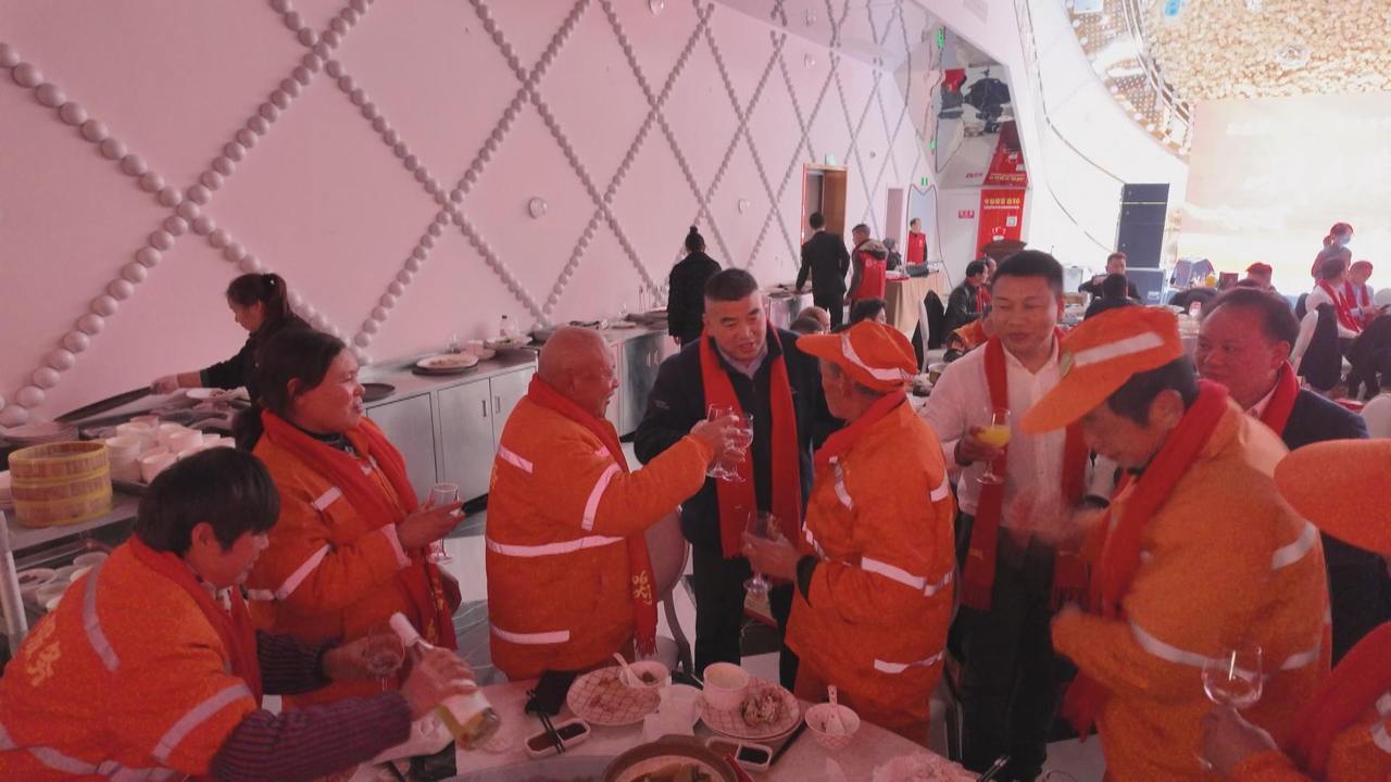 环卫工人张永海在黄岩工作18年,连续十年参加这场年夜饭,对他而言,这顿饭早已成为异乡最踏实的团圆。“年夜饭办了十年,年年都很隆重,饭菜香、人心更暖,黄岩就是故乡,和老乡、热心人在一起,心里特别高兴。”