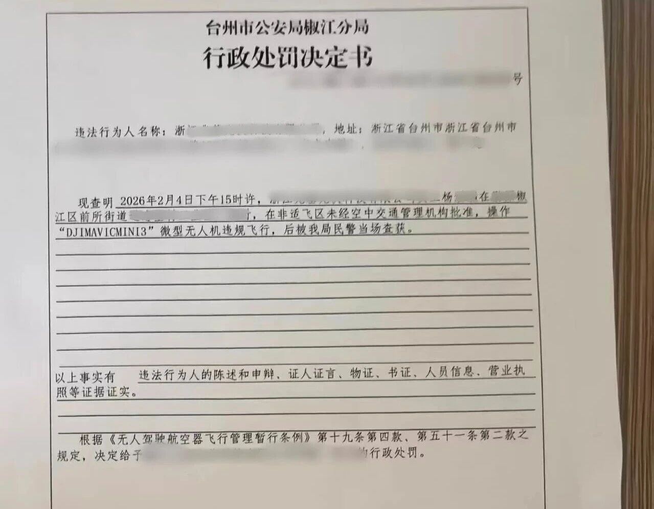 近日,台州市公安局椒江分局依法查处一起无人机违规飞行案件。这是自1月1日新修订的《中华人民共和国治安管理处罚法》实施后,椒江区开出的首张无人机“黑飞”罚单。