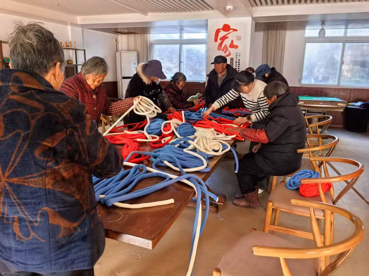 活动还将文明宣传融入年俗体验,工作人员在各点位开展扫黄打非、反诈及“拒燃烟花爆竹”宣传,发放手册、讲解知识,引导大家践行文明新风。此外,旧物回收积分、手工缝制坐垫、制作抱枕等文明实践环节也各有特色,村民主动整理闲置物品,以实际行动践行文明新风,让年味更有温度。