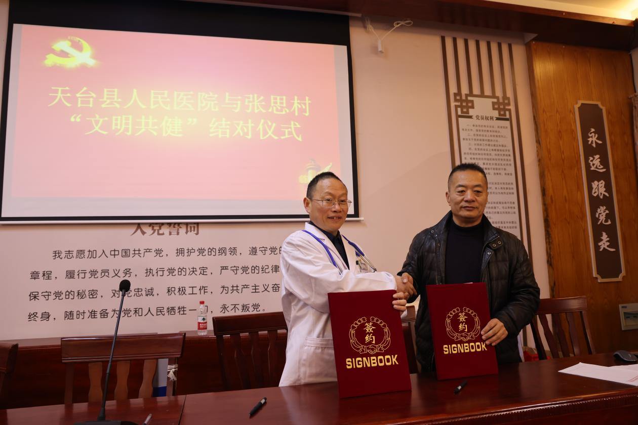 此次文明共建活动不仅是“送健康”下基层,更是“种健康”入民心,也是两家全国文明单位(村)以文明共建促健康共融的生动尝试。活动期间,天台县人民医院与张思村正式签订了结对共建协议。双方将围绕“健康促进、资源共享、文明共建”等方面开展深度合作,通过建立专家巡回诊疗、基层医务人员培训、远程医疗协作、联合健康宣教等项目,构建稳定可持续的医疗卫生服务网络,推动县级医疗资源与村级服务体系统筹融合,真正实现“资源下沉、服务前移、健康共管”,为村民提供全方位、全周期的健康保障。