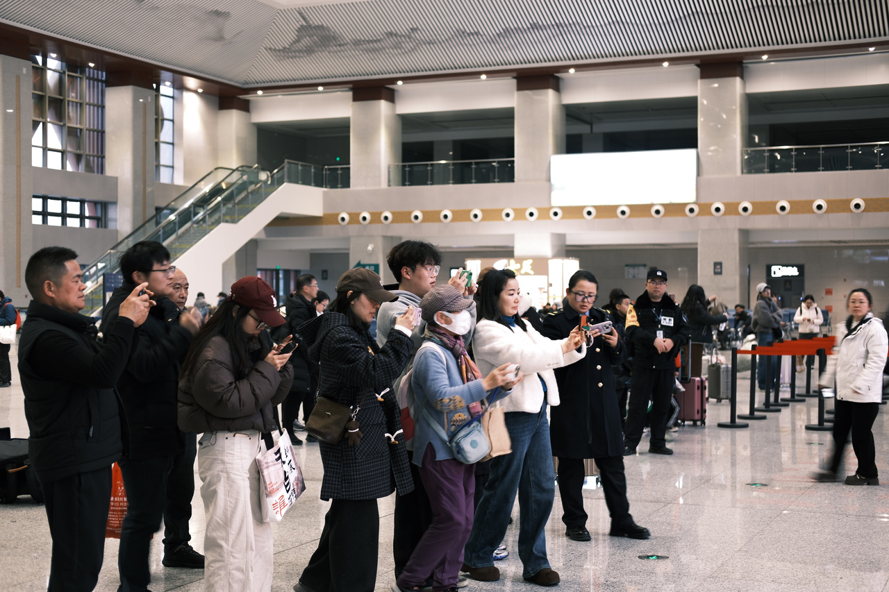 候车大厅内,悠扬的小提琴与醇厚的萨克斯轮番奏响,经典旋律与新春乐曲交织回荡,舒缓旅客奔波疲惫,传递新春美好祝福。不少旅客驻足聆听、拍照留念,在悠扬乐声中感受浓浓年味。现场同步设置新春打卡点,喜庆装饰与特色布景相映成趣,成为旅客记录团圆旅途、定格新春美好的热门点位,让归乡和出行之路更有温度、更具格调。