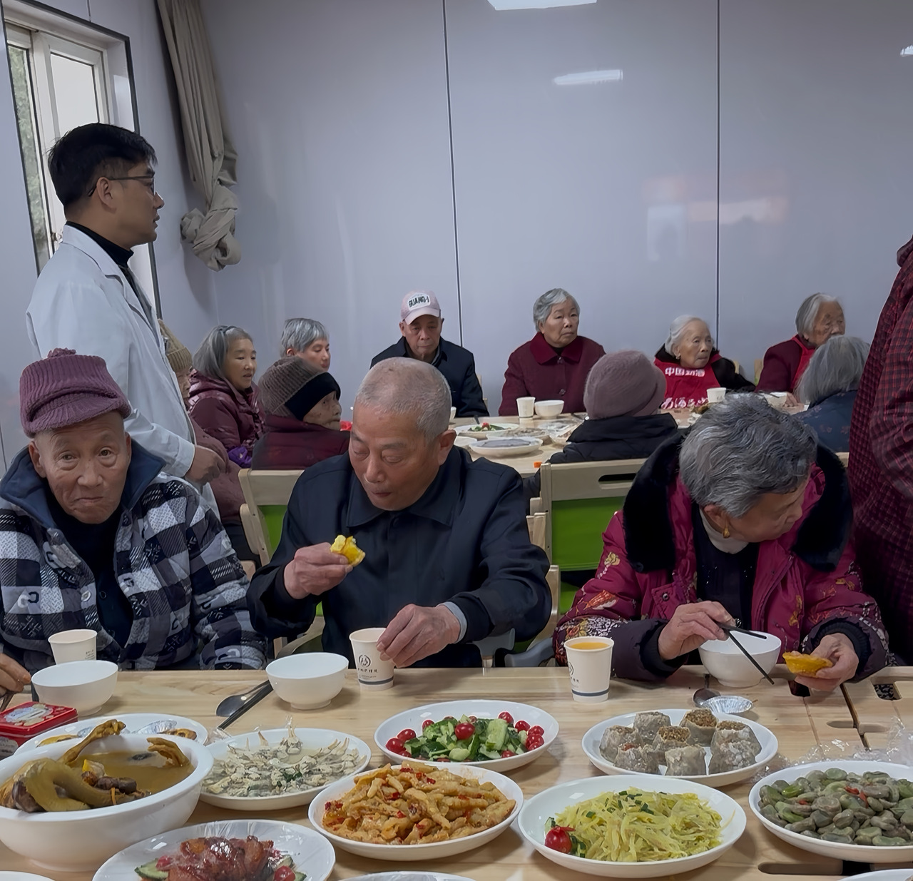 老人们的新年愿望简单而朴实:身体健康。在方林护理院,一顿热饭、一句关心、一份陪伴,便温暖了整个新年。