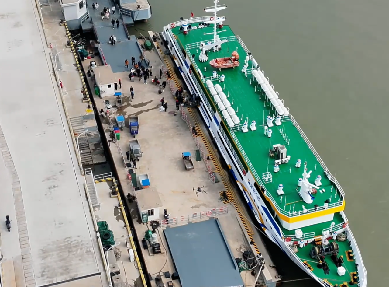 从航线预巡、客流监测到全程伴航、安全引导,多架无人机编队协同作业,实现快速响应、全流程覆盖的护航模式。这些“空中哨兵”的默默值守,让水上春运航线更安全顺畅,让每位旅客的归途满溢安心与温暖,让平安成为这个春节最珍贵的“年味”。