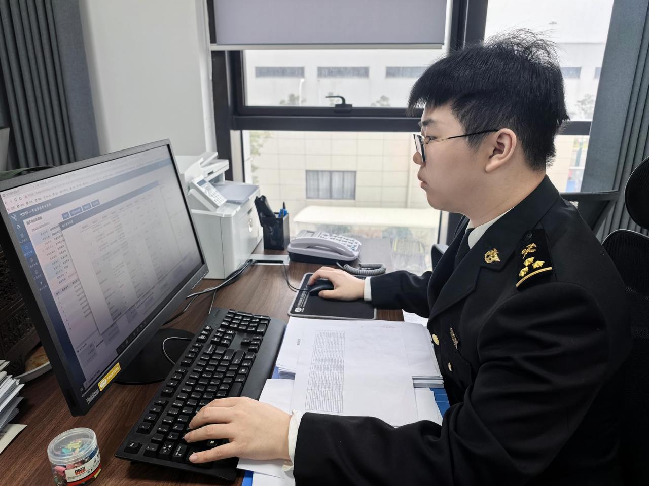 春节期间,台州综保区内的跨境电商业务较平日愈加繁忙,但对已经连续第二年在综保区执行春节值守任务的王天航来说,一切都显得驾轻就熟。面对电脑屏幕上不断弹出的审批指令,点击、审核、通过,不到一小时王天航就完成了全部审批工作,一批批跨境商品被顺利验放出区。