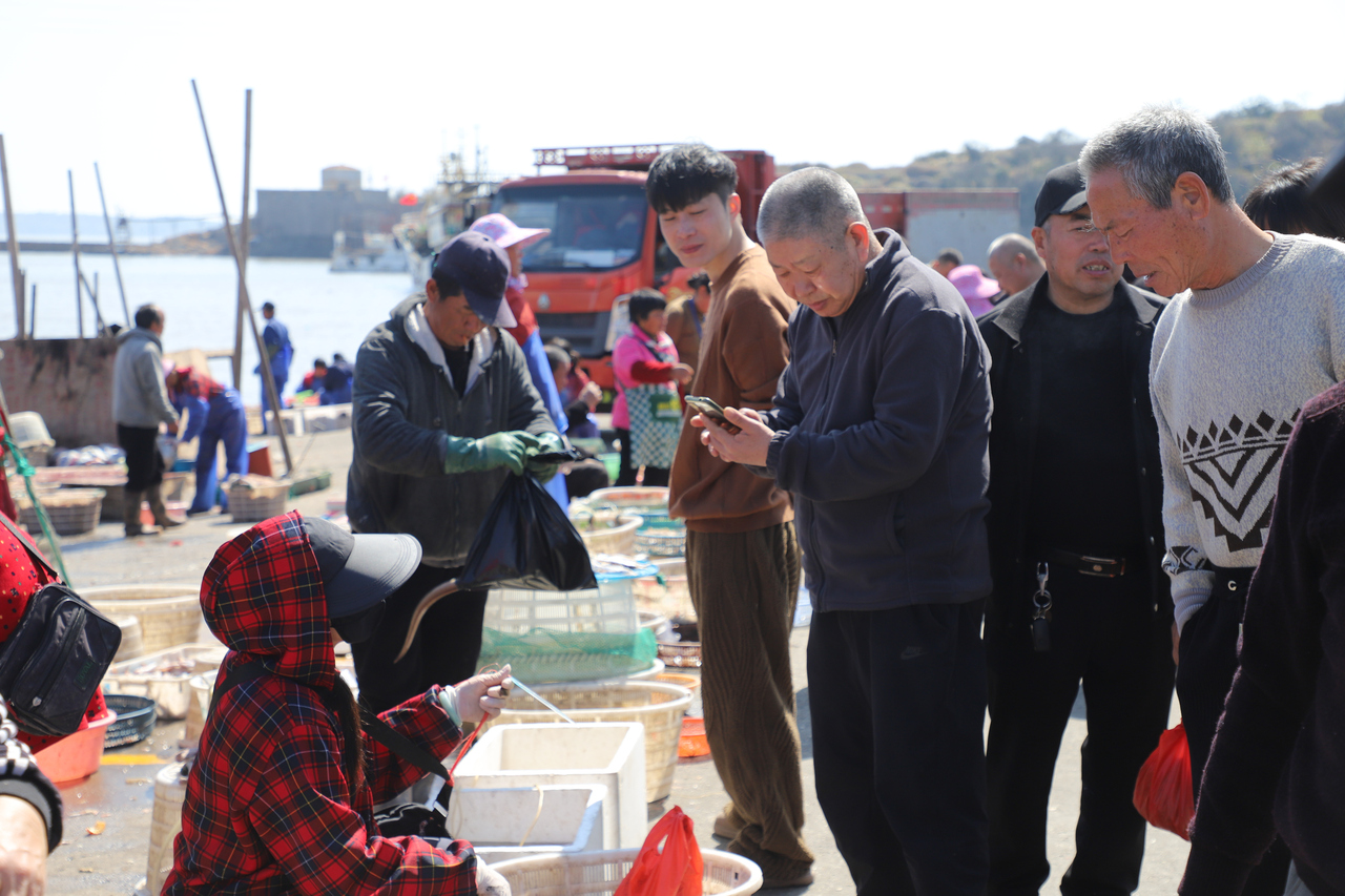 松门镇信息指挥中心工作人员介绍,正月初五这天,该镇就有100多艘渔船出海捕捞生产。午后,随着渔船的陆续回港,购买小海鲜的顾客也是接踵而来,石板殿码头的海鲜市集又热闹了起来。