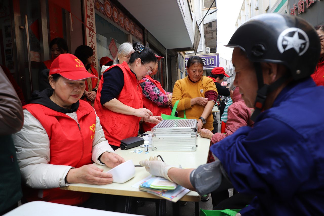 健康义诊区关怀备至,益善好人志愿者服务中心的志愿者为群众提供免费的量血压、血糖服务。当看到血压仪红灯闪烁时,志愿者便会启动二次检测,若数值仍存异常,就会给老人普及高血压预防知识,叮嘱老人饮食注意事项。