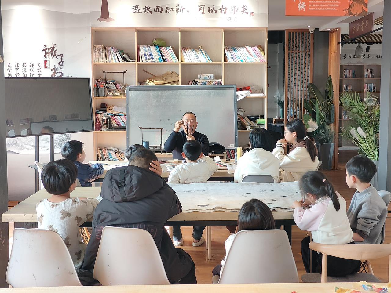 当小学生们围坐在书桌前,书屋里又多了几分童真气息。张玲生从最基础的执笔姿势讲起,耐心示范起笔、行笔、收笔的要领。