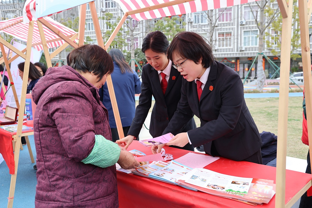 在巾帼维权摊位上,该镇妇联与人民法庭的工作人员向过往的妇女市民发放反家暴法等宣传资料,并向大家讲解身边的经典案例。“我们农村的百姓在维权意识上还是有待加强的,让女性朋友们多了解相关法律知识,对维护家庭和睦、助力平安建设非常重要。”箬横镇妇联主席陈巧巧说。