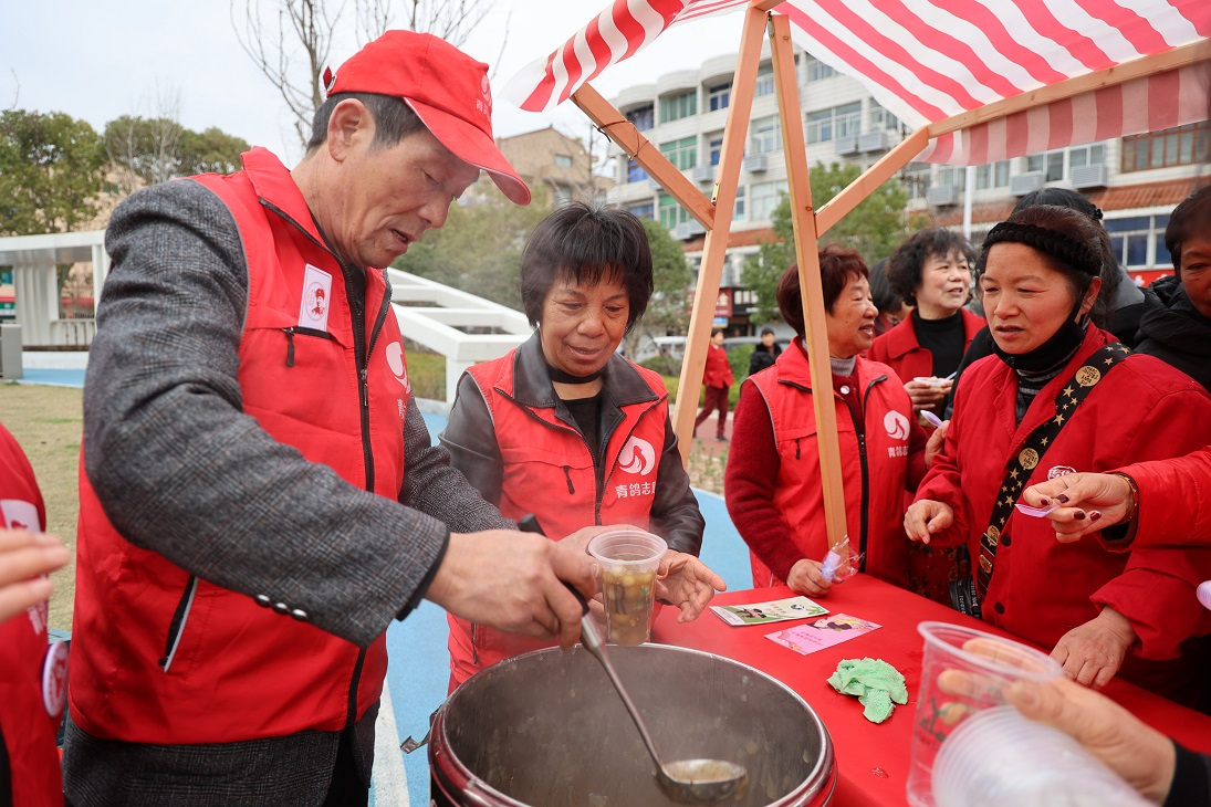 在民宿美食摊位上,享受了一番政策咨询服务的市民群众有序拿到了一个个油鼓、一碗碗汤圆。“眼下的日子很好,元宵节、三八节、雷锋日都非常贴近,我们把这些都融合起来,让大家有的学、有的玩、有的吃。”志愿者们表示说。