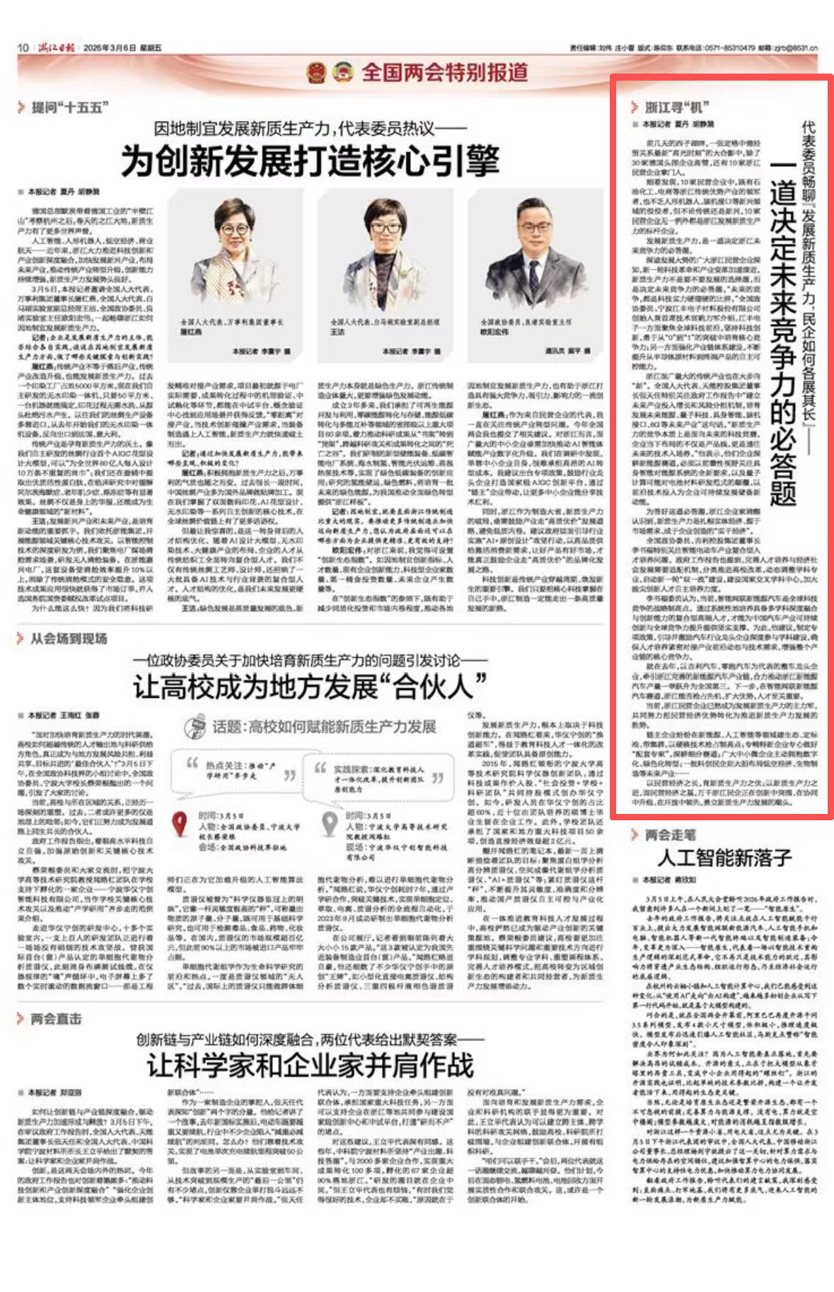 以民营经济之长,育新质生产力之优;以新质生产力之进,固民营经济之基,万千浙江民企正在创新中突围、在协同中升级、在开放中领先,勇立新质生产力发展的潮头。