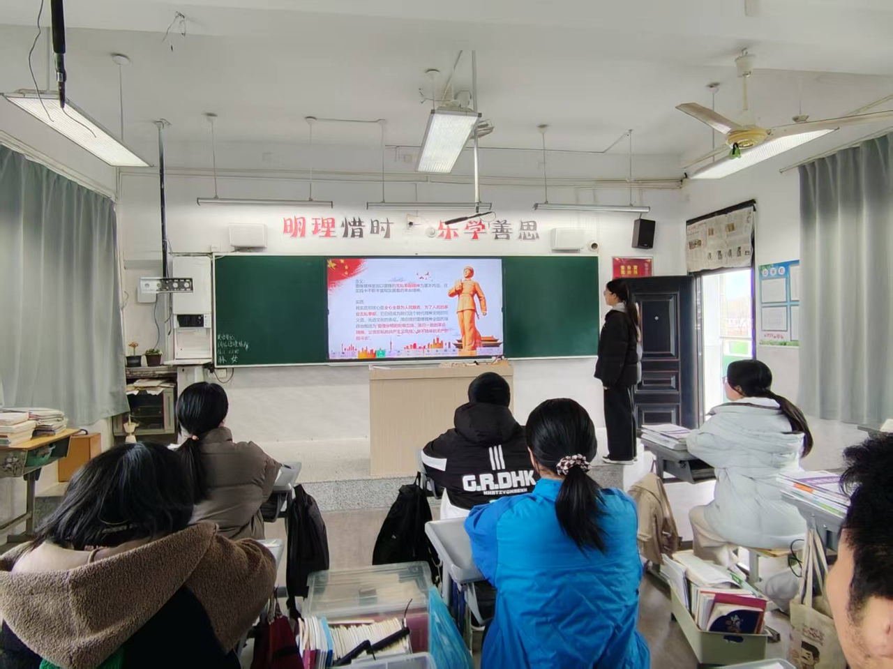 活动伊始,学校以全校集会形式正式启动学雷锋主题教育。操场上,师生庄严肃立,德育副校长杨宇峰向全体同学发出“向雷锋同志学习”的倡议,号召大家传承“服务人民、助人为乐”的奉献精神,从身边小事做起,在实践中感悟雷锋精神的时代内涵。集会结束后,各班级陆续开展学雷锋主题班会,通过观看雷锋事迹短片、分享雷锋故事、热议新时代雷锋精神等形式,让同学们深刻理解雷锋精神的核心要义,激发志愿服务的热情。