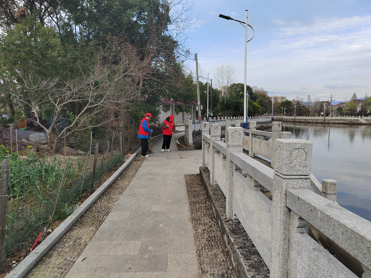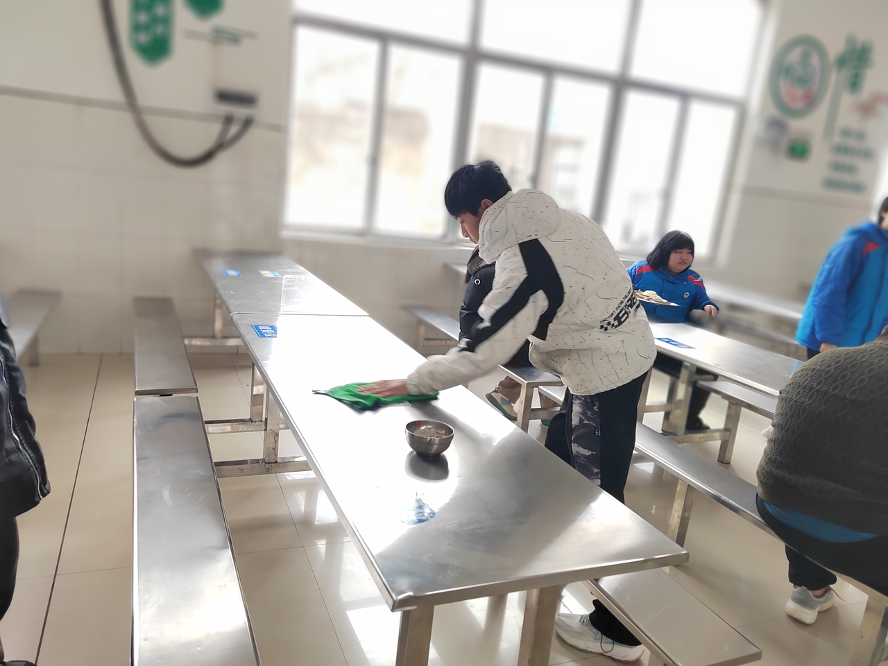 主题教育过后,志愿服务活动全面铺开。校园内,同学们踊跃参与,分工协作:有的手持抹布、水桶,仔细擦拭宣传橱窗和走廊栏杆,让校园公共设施焕然一新;有的走进食堂,协助工作人员清理餐桌、整理餐具,助力营造整洁有序的就餐环境;有的化身“图书管理员”,在图书馆内整理书架、清点书籍,为师生阅读提供便利。校园外,同学们带着垃圾袋、夹子等工具,来到学校周边的草丛和池塘边,重点清理春节后残留的烟花壳、塑料袋等垃圾。大家不怕脏、不怕累,弯腰捡拾、分类收纳,经过近两小时的努力,共清理各类垃圾近10袋,让周边环境得到显著改善,用实际行动践行环保理念。