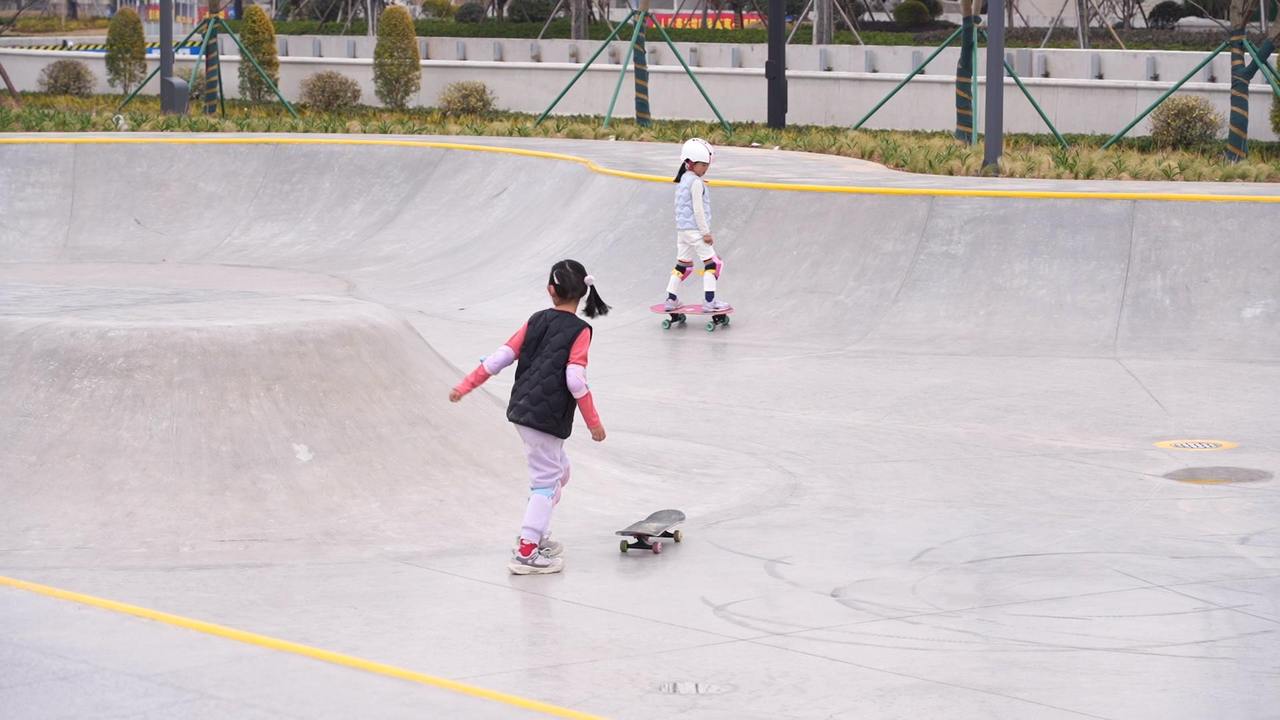 运动场内,设有高标准的专业级滑板场,它也是本次新开放区域的亮点。“我们请上海专门做滑板运动场的施工班组过来做这个滑板运动场的,质量很好,能满足滑板运动员对材质的要求。”椒江城市发展投资集团有限公司工程部经理黄华治说。