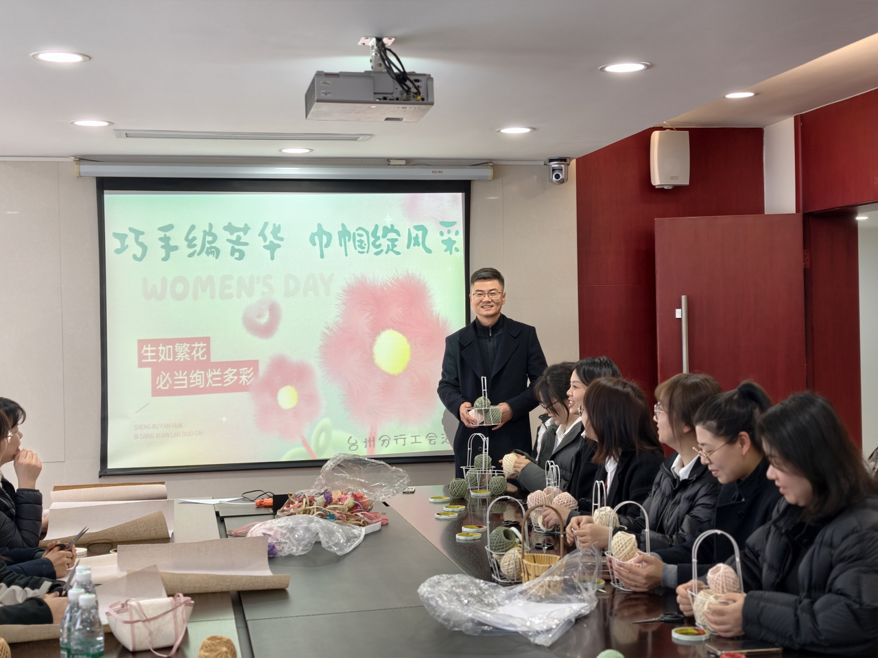 活动现场,周尚卫主席与女员工们亲切交流,驻足观看大家的手工创作过程,对大家巧夺天工的作品给予高度评价。他表示,全行女员工是推动稠行高质量发展的“半边天”,长期以来在各自岗位上恪尽职守、锐意进取,以专业能力和责任担当诠释了稠行人的初心使命,用智慧和汗水为稠州银行台州分行发展作出了重要贡献。他寄语全体女员工,要继续保持自信、自立、自强的精神风貌,在工作中绽放光彩,在生活中收获幸福,分行工会也将持续做好员工的“娘家人”,为大家办实事、解难题,让“家文化”的温暖浸润每一位员工。