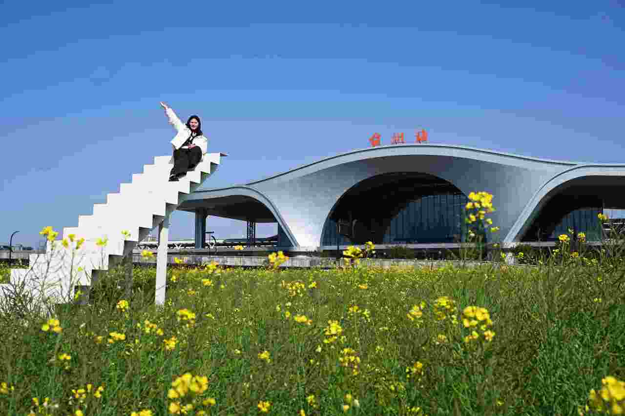 城市另一头,在台州站西广场,一大片金色油菜花也成为许多人抵达台州后看到的第一道春景。