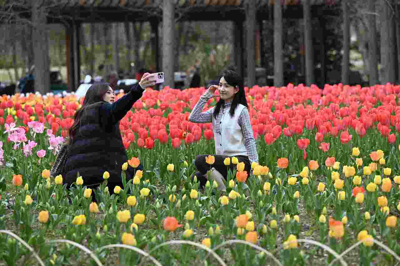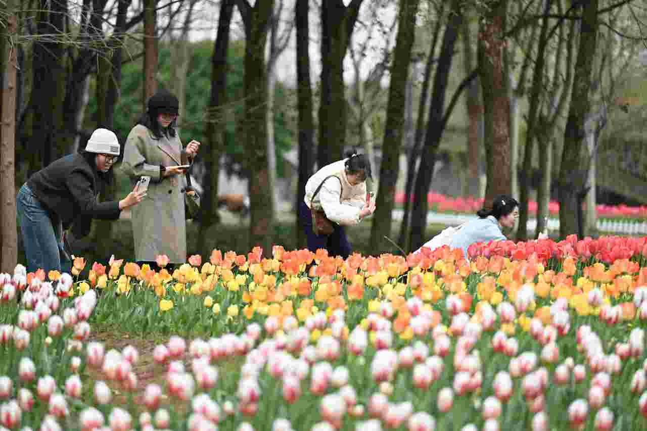 玉兰在街巷间舒展开花瓣,油菜花在田野与城市的边缘铺成金色的海洋,郁金香在湖畔织出斑斓的色块……花在盛放,人们则在花海中散步、拍照、相遇,感受着春天的气息。