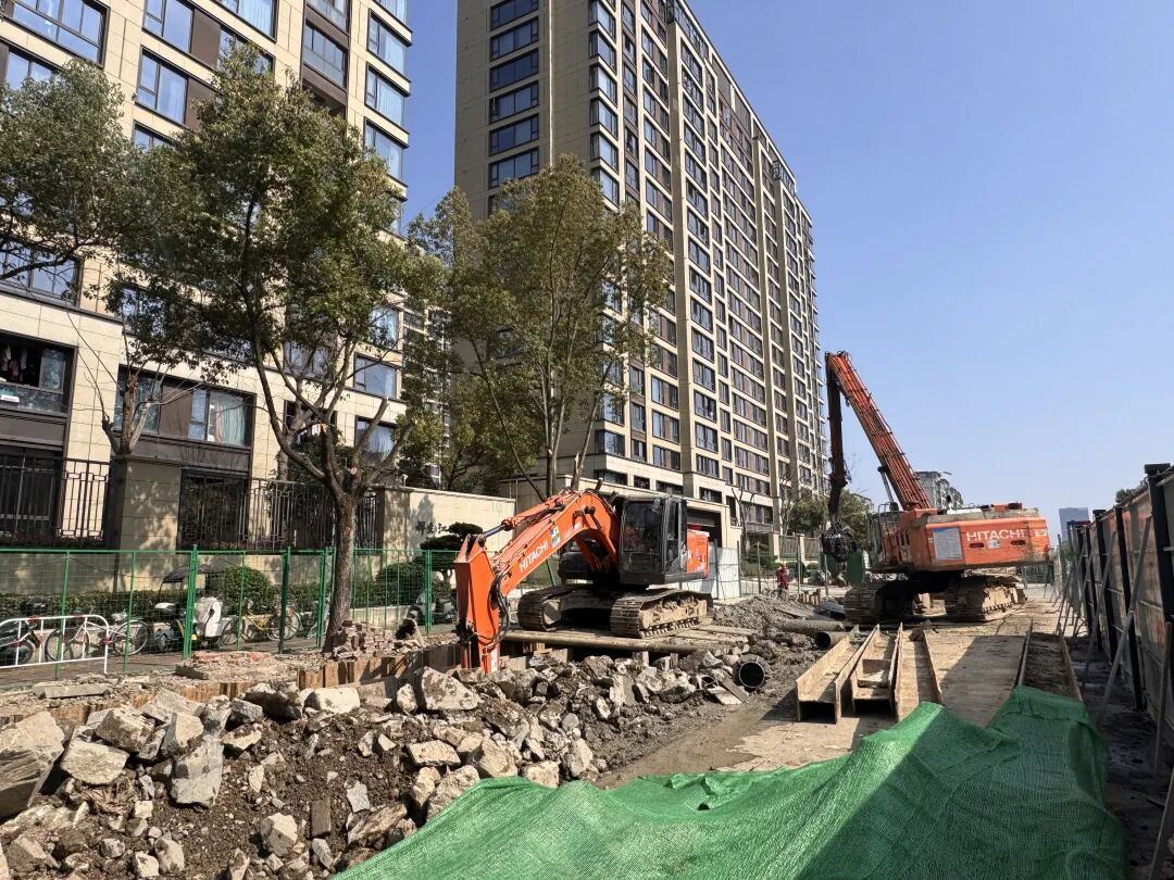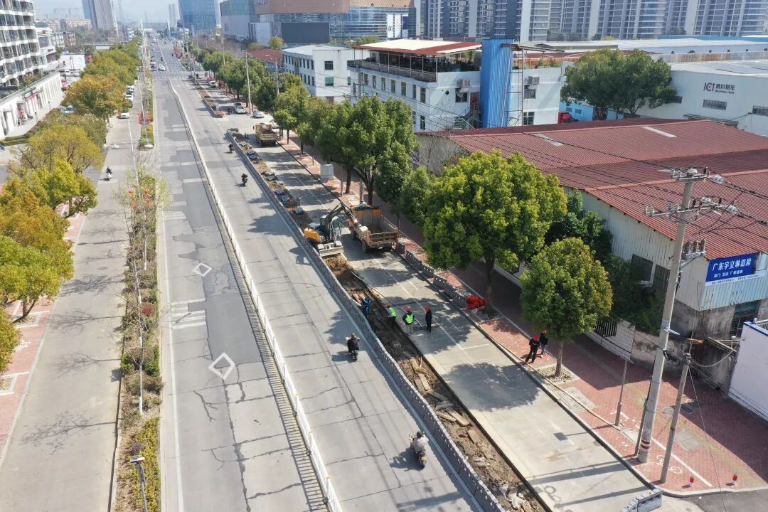 此外,在还未围挡施工的路段,施工团队同步开展道路绿化带挖除硬化工作,通过合理拓宽通行空间,保障施工期间市民的通行需求,同时也为后续道路主体施工创造了良好条件。