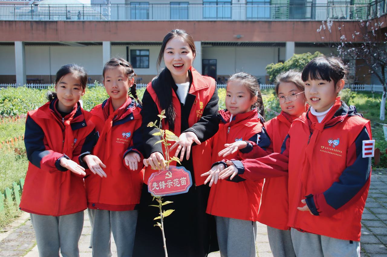 启动仪式上,该校校长邹淑君阐释劳动育人价值,鼓励师生在实践中厚植家国情怀。党员科学教师方旌羽开设“太空种子与小果苗”科普微课堂。随后,党员、团员与少先队员“大手牵小手”,共栽“先锋示范苗”,并系上责任牌。前期,少先队员们还自主设计植树节徽标,并借助人工智能技术制作成帆布袋、书签等文创作品,让绿色理念可触可感。
