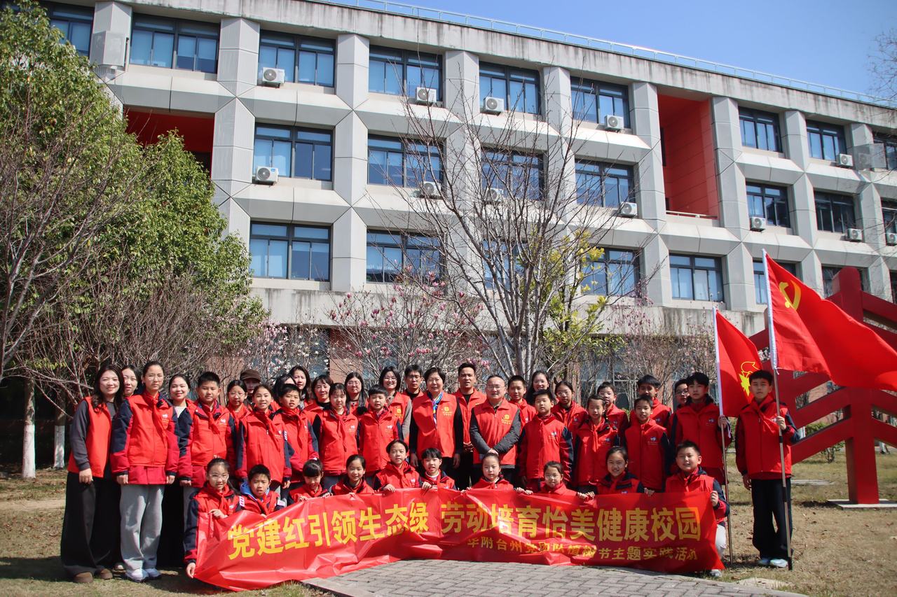 3月12日,华东师范大学附属台州学校以“党建引领、五育融合”为主题,组织开展植树节实践活动。活动围绕“植绿、护绿、爱绿、研绿”主线,将党建带队建、劳动教育、科学探究、美育创作与健康教育深度融合。