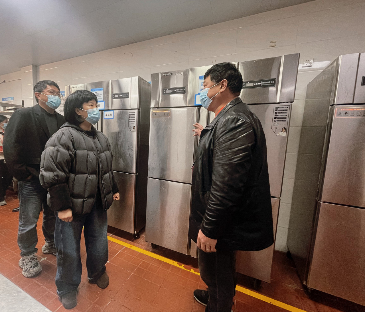 正值开学季,校园食品安全牵动着每一位家长的心。代表们直奔城南小学食堂核心区域,开启了一场深度监督检查。在餐具保洁区,严金怀代表伸出手拉开了角落里的消毒柜,摸了摸刚消过毒的碗碟,确认是否干爽、有无水渍。“消毒柜要每天清理干净,保证正常运转,孩子们的健康不容小视。”