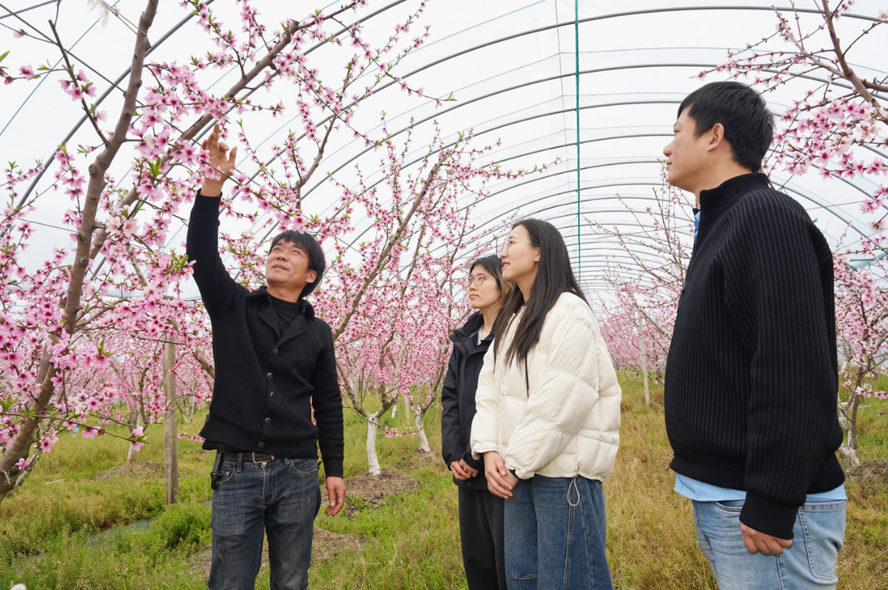 “疏花要懂得取舍,才能让精华果实茁壮成长。”随后,农场负责人陈文轩带领青年们深入桃园,现场讲授春季桃树管护的关键技术。从花期管理、病虫害防治到水肥调配,陈文轩将多年种植经验倾囊相授,青年们认真聆听、踊跃提问,并亲手尝试疏花、绑枝等实操环节。这场“田间教学”以直观、生动的方式,加深了青年干部对现代农业技术的理解,也增强了他们服务农业农村的真本领。