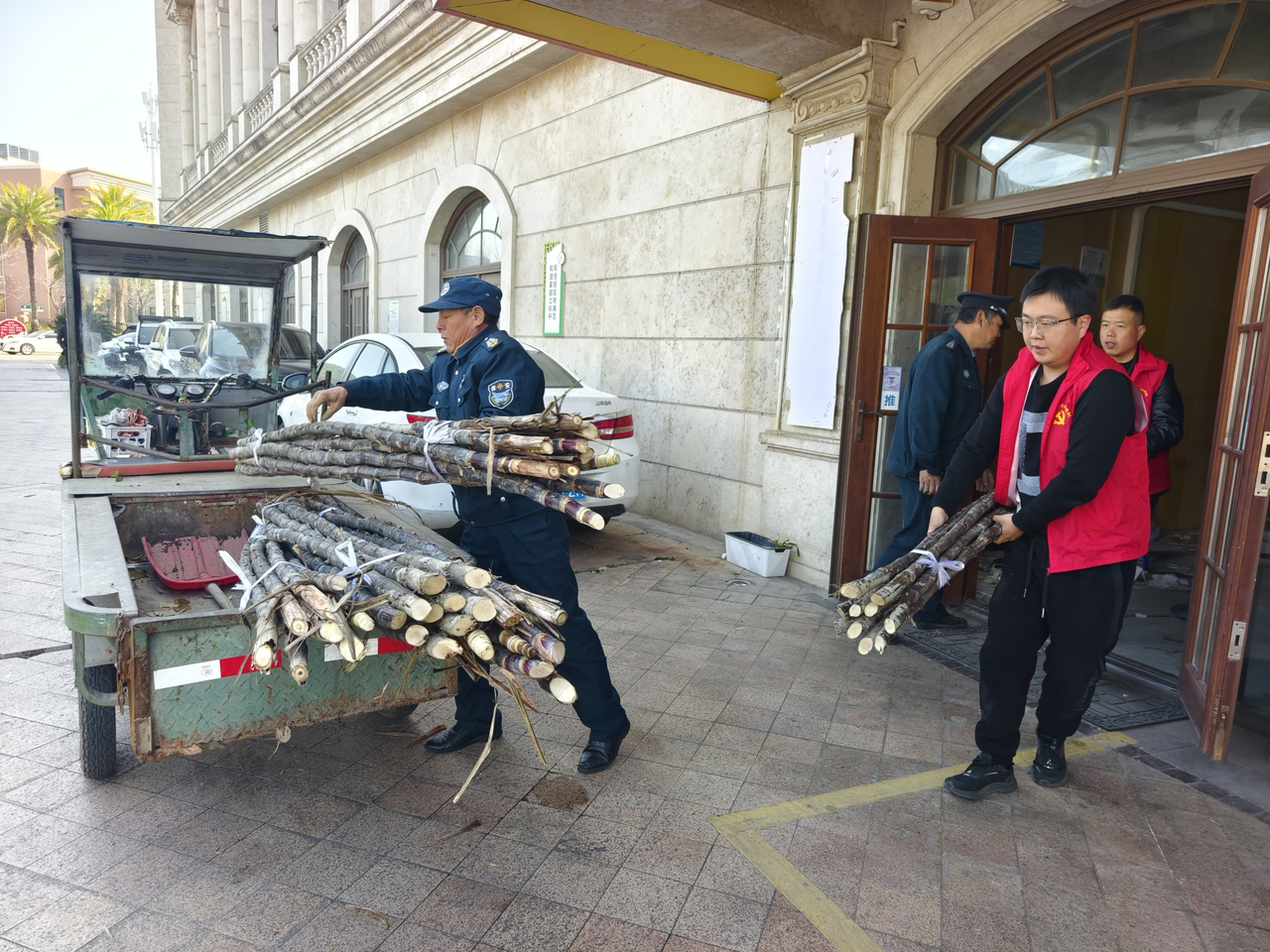 在社区线上宣传的推动下,一位报到在开元社区的在职党员积极响应,一次性认购20捆甘蔗。但她并未留为己用,而是全部赠送给社区内的环卫保洁人员。3月15日上午,开元社区邀请“城市美容师”们来到党群服务中心,亲手送上这份甜蜜的温暖。从帮助一位素不相识的蔗农,到关爱一群默默奉献的环卫工人,这份爱心在接力中不断延续。