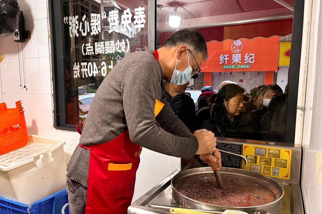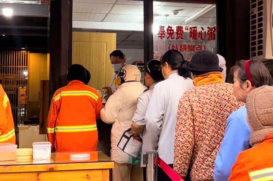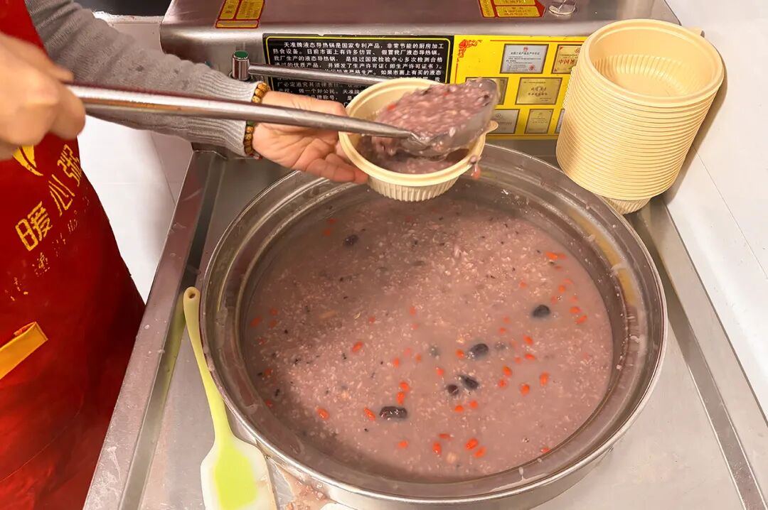 “每天早上忙完,能在这儿喝碗热粥,心里暖洋洋的。”一位环卫工人笑着说道。对于周边的老人而言,这里不仅是早餐铺,更是每天可以唠家常的地方;对于保安兄弟们来说,这更是一份被这座城市记挂的关怀。