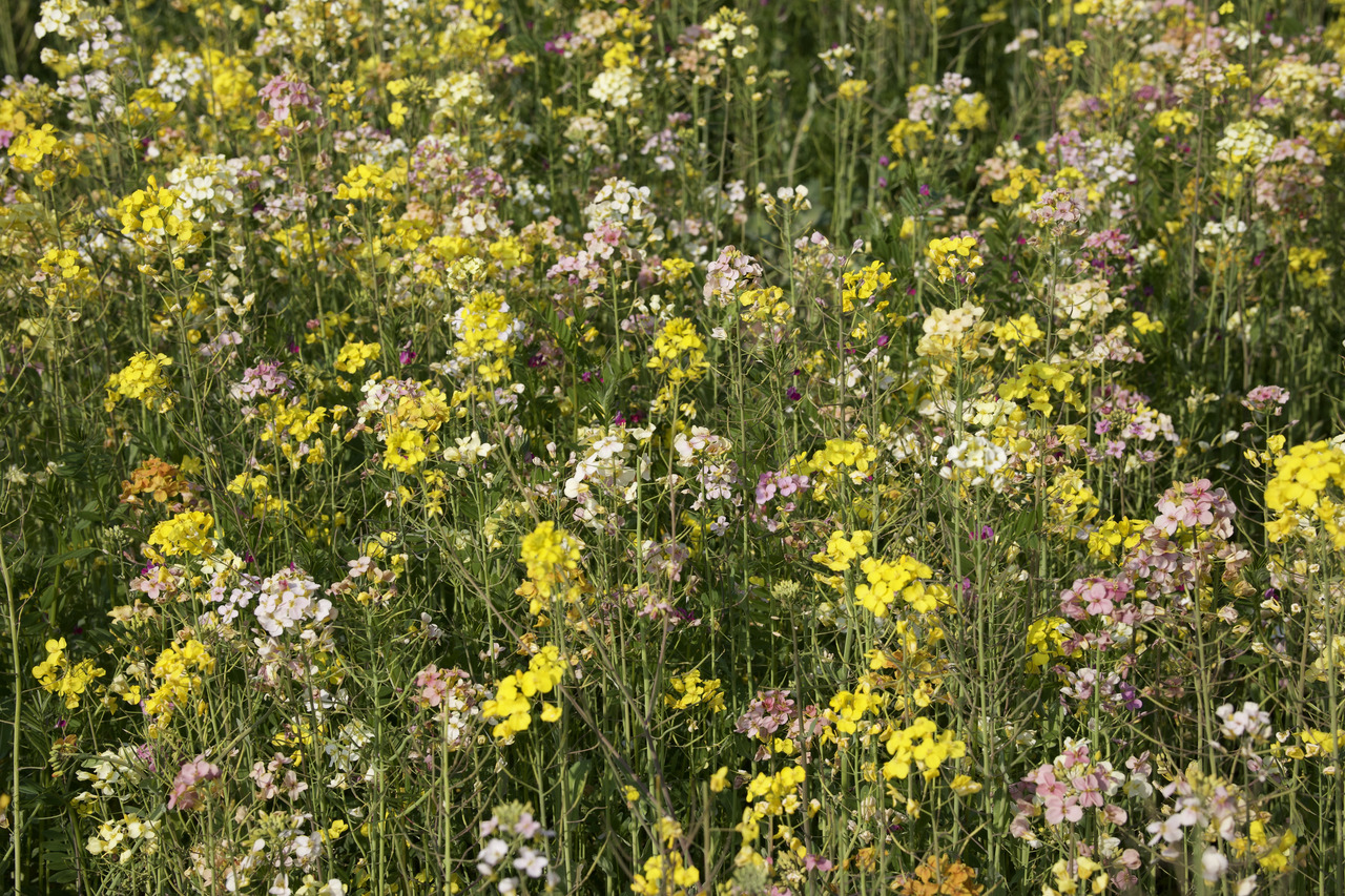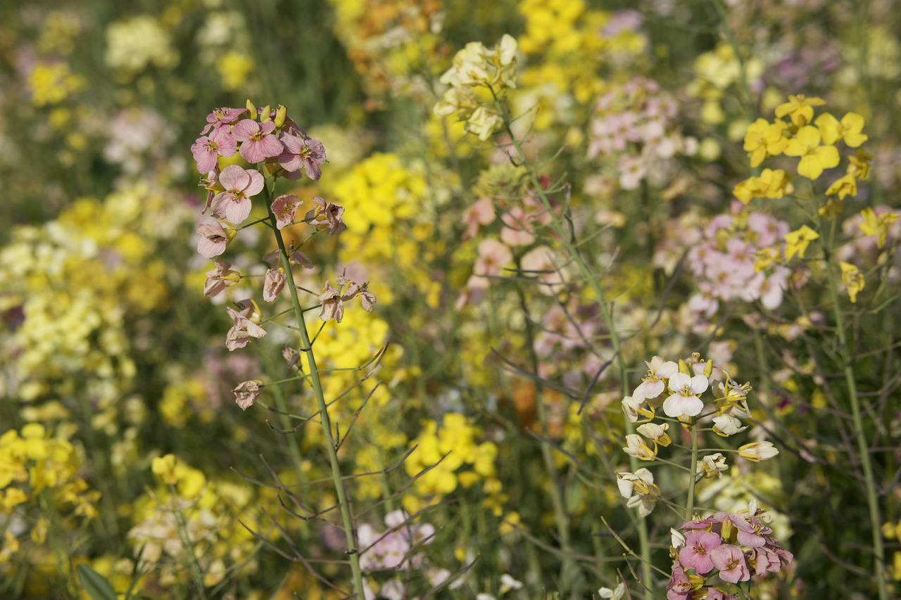 但彩色油菜花的出现,却并非转基因技术的结果,而是传统育种方法的成果。通过珍稀花色花粉的筛选,结合远缘杂交、轮回选择及定向回交等技术,便能实现不同花色基因的重组,从而不断丰富油菜花的花色种类。