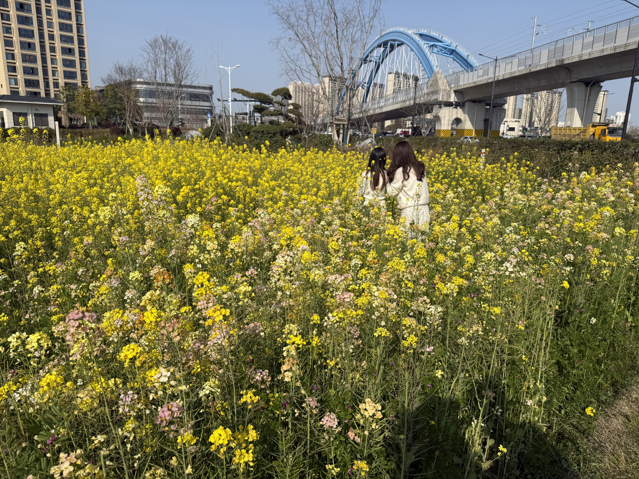 在城市里,油菜花同样绽放出新的景象。