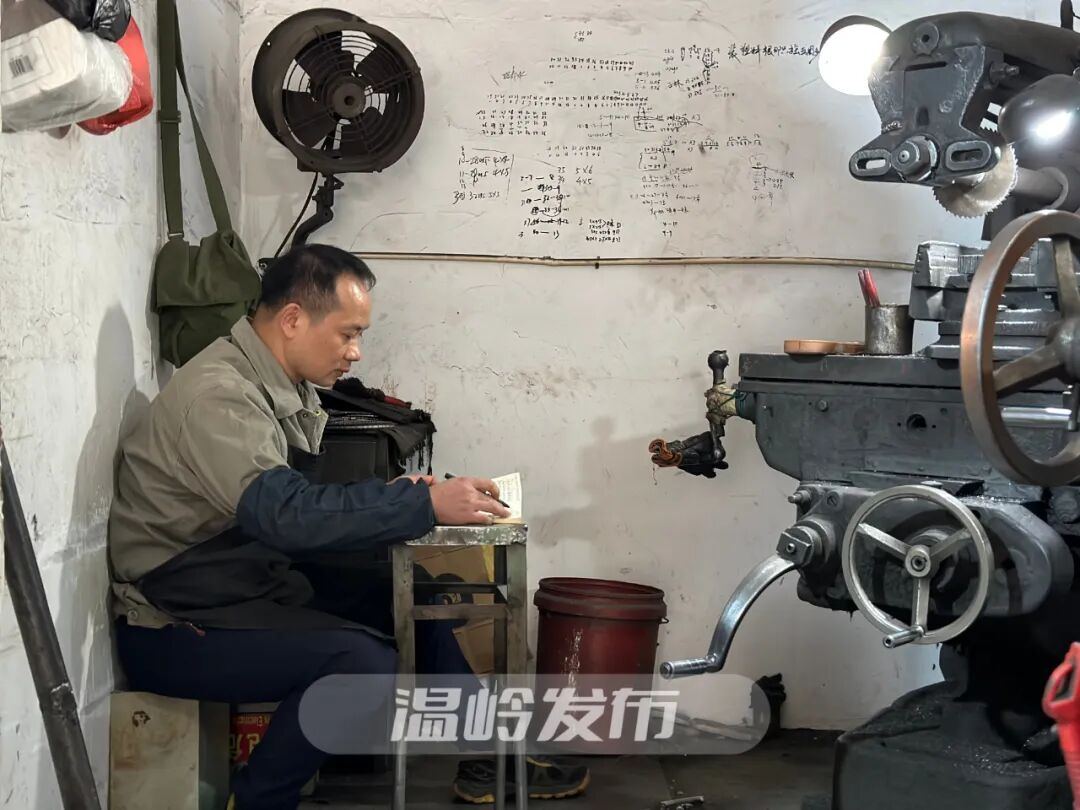 铣床车间里,光线略暗,刺耳的轰鸣声不绝于耳。趁着休息间隙,廖品仕将铣床上的照明灯转了个方向,朝向了墙角。