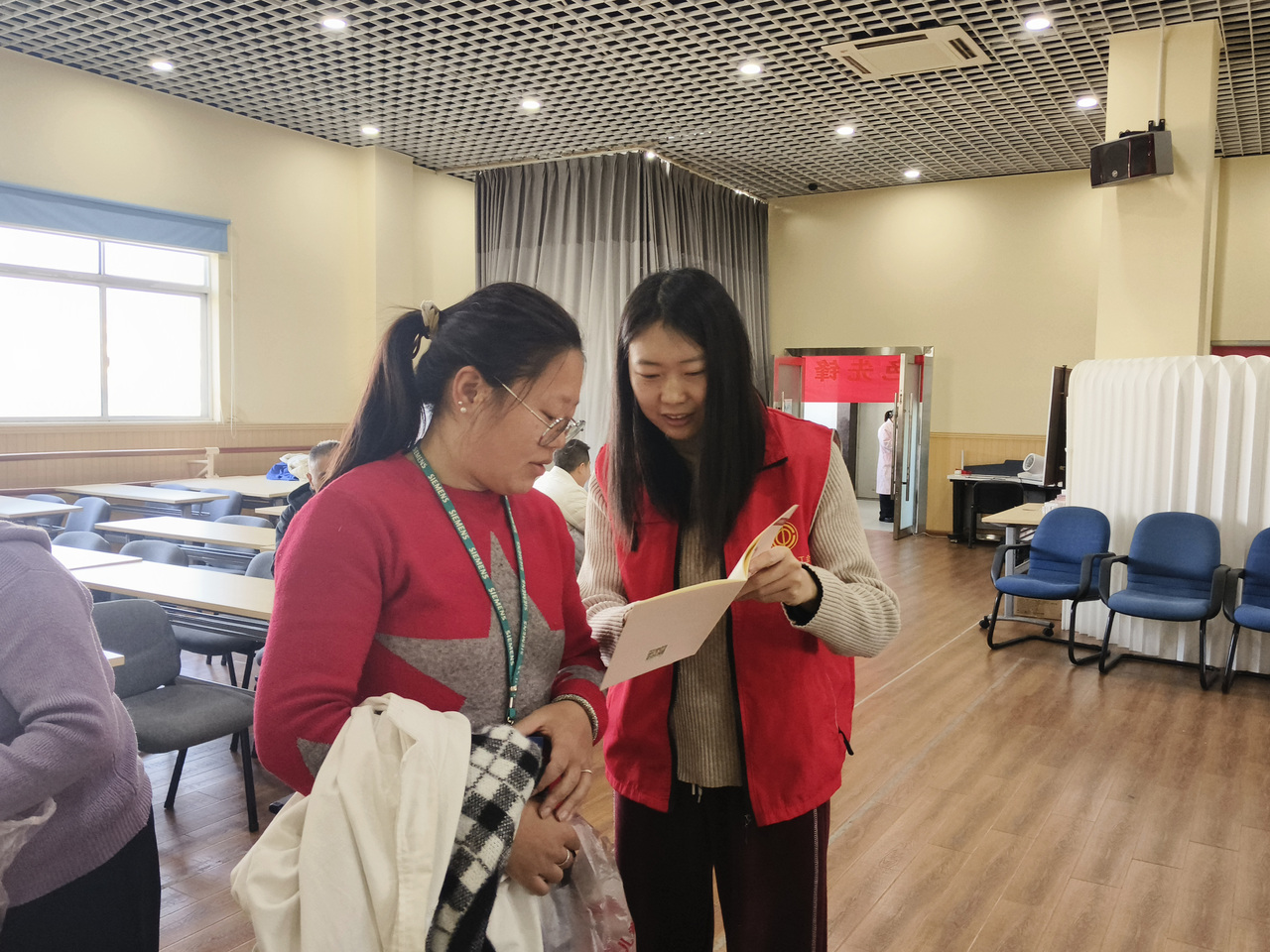 多家医疗机构同步开展免费体检、义诊服务。医护人员为职工测量血压、血糖,检查妇科、B超,提供骨科、消化科、内科、甲乳外科等多学科咨询,细致问诊、精准答疑,给出个性化诊疗建议与康复指导。天台农商银行工作人员用通俗易懂的语言讲解防诈骗知识、存款保险制度,手把手教大家识别假币、普及“拒收人民币违法”等现金使用规范。街道工会、卫健办等志愿者同步发放工会法、健康手册、惠民政策等宣传资料,面对面答疑解惑,打通服务职工“最后一公里”。