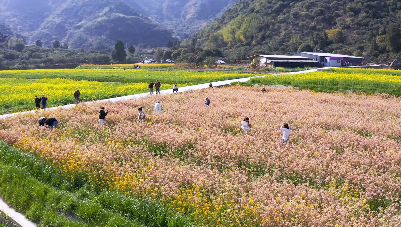“太惊艳了!粉色与金黄交织的油菜花,随手一拍都是大片!”春日里,台州市黄岩区高桥街道三童岙村近百亩多彩油菜花海刷屏社交平台,花浪起伏、芳香沁人,大批游客慕名来打卡,无不被这份浪漫景致打动。