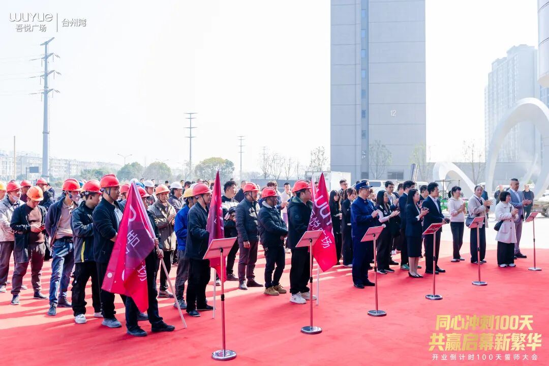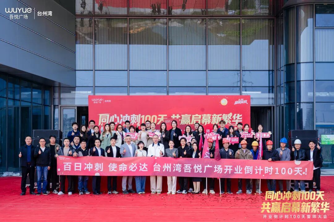 随着2026年6月26日开业节点的临近,台州商业地产圈即将迎来一位备受瞩目的“新成员”。3月18日,台州湾吾悦广场迎来开业倒计时100天的重要时刻,一场以“同心冲刺100天,共赢启幕新繁华”为主题的誓师大会在项目现场举行。