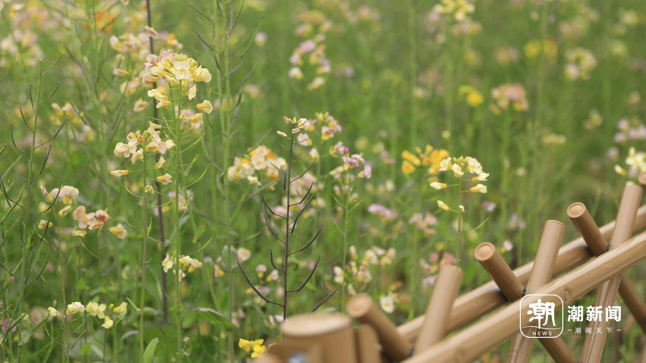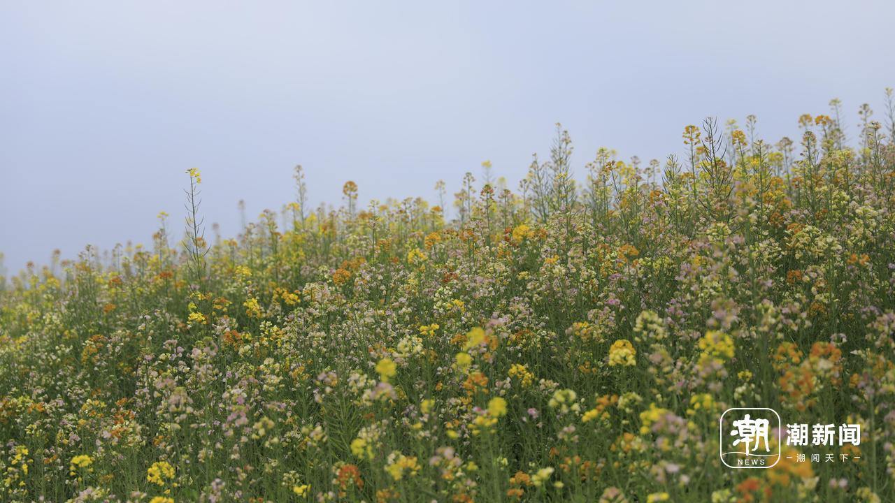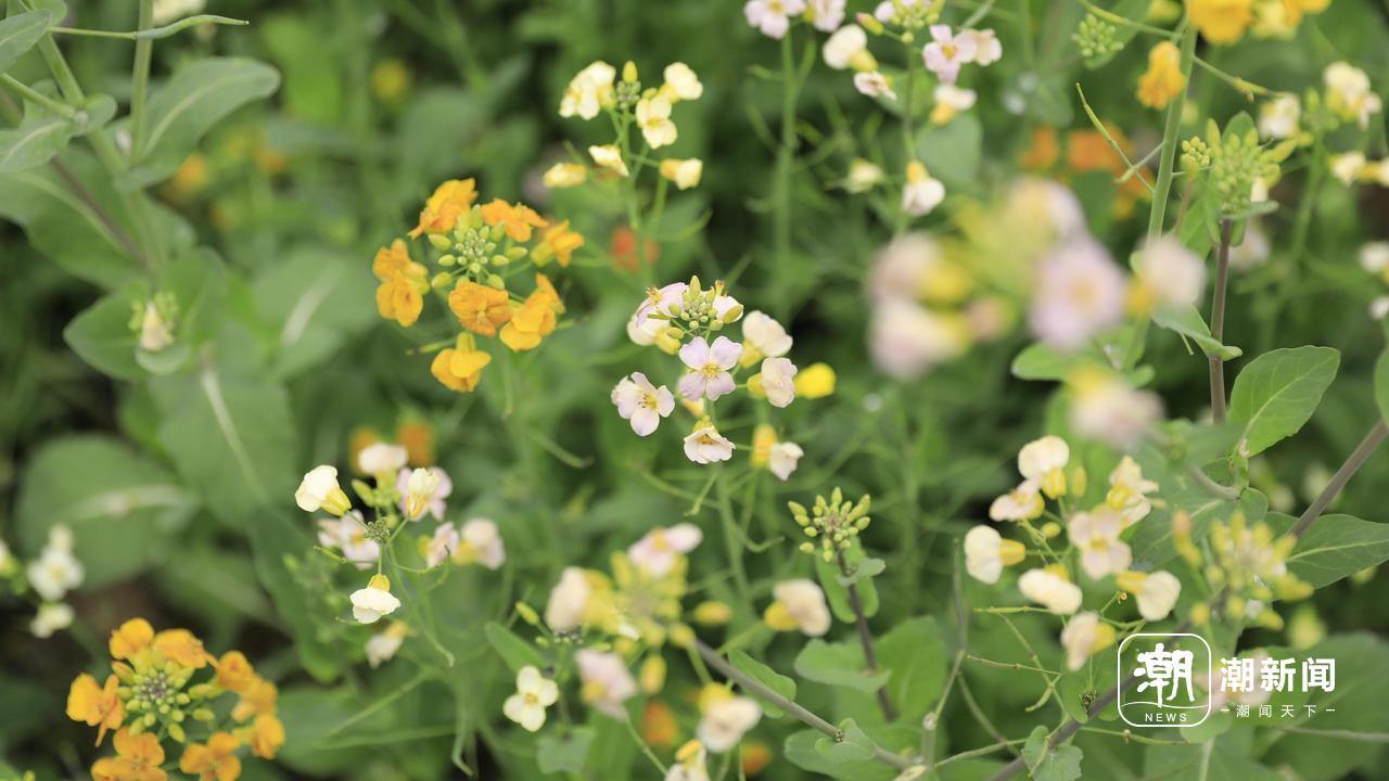 近日,在椒江区章安街道谢张村内的一片彩色油菜花田花期正好,吸引众多市民前来打卡拍照。