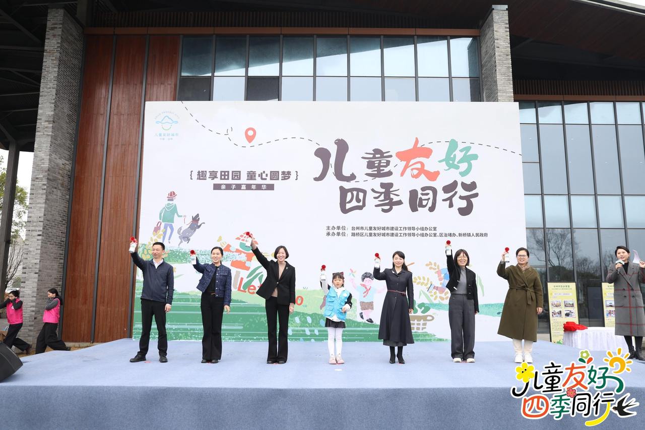 3月21日上午,2026年台州市“儿童友好 四季同行”主题活动在路桥启动,80余组家庭参加“亲子欢乐行”趣味打卡挑战,在田园风光中共度周末陪伴时光。