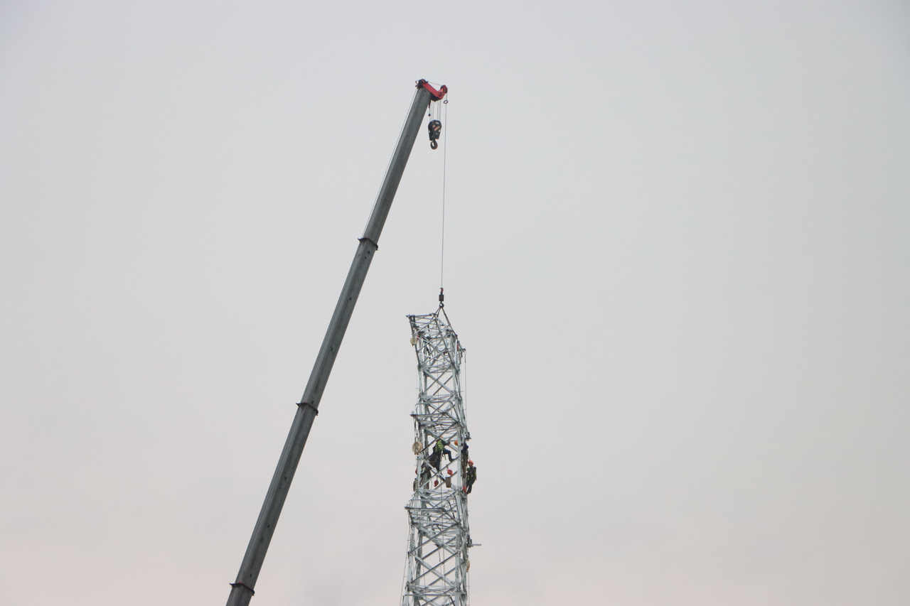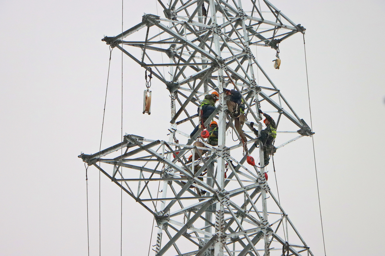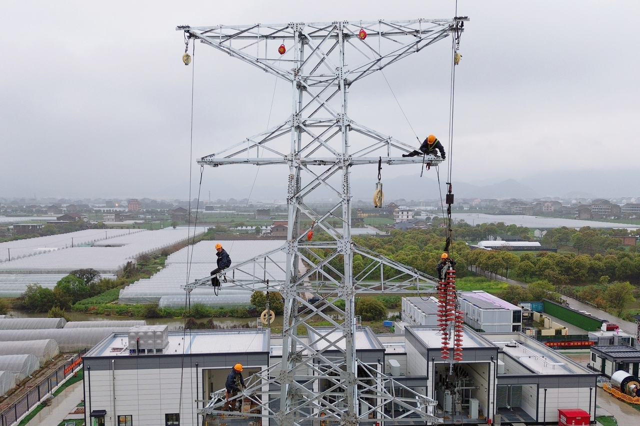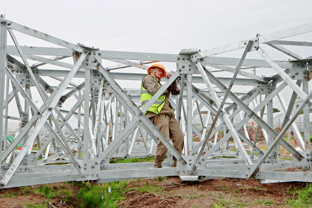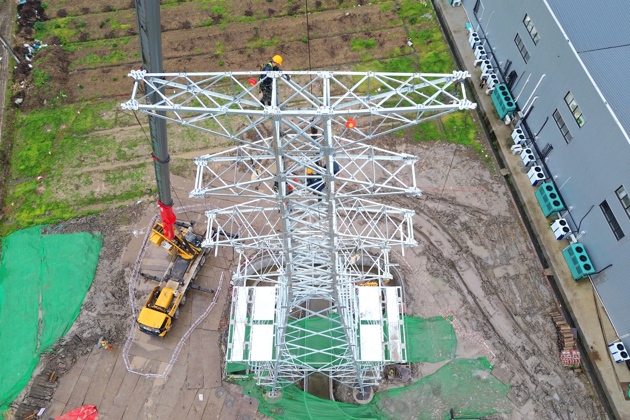 3月31日,国网温岭市供电公司首个业主施工自主管理的高龙110千伏输变电工程施工现场,20多名作业人员冒着大雨,身着专业装备,空地协作,顺利组立第17号铁塔,为今年6月份投运送电筑牢坚实基础。据了解,该工程始于去年1月开工,除新建一座变电站、2台50兆伏安主变压器、2回110千伏出线、28回10千伏出线外,还配套建设双回架空线路4.848公里、双回电缆线路0.073公里、双回路铁塔17基。整个项目投运后,将为箬横镇东浦泵与机电智造园300余家企业提供电力保障,助力温岭冲刺“双两千亿”城市行列目标贡献力量。