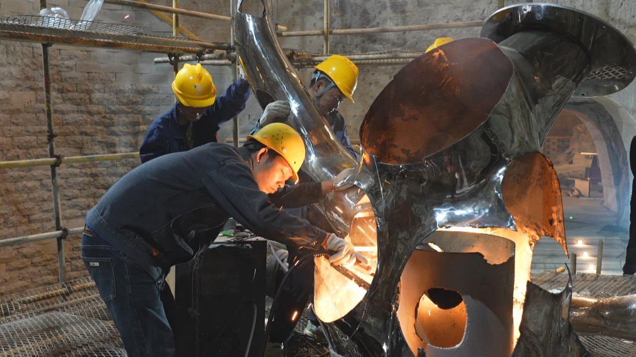 据悉,这株杨梅祈福神树并非天然树木,而是一件匠心独运的艺术装置。树高7.5米、树冠最宽处达7.6米,整树采用纯手工锻造的异形钢结构,叶片用不锈钢精心打造,在自然光线下熠熠生辉、质感十足。尤为独特的是,树体中间巧妙镶嵌LED点光源,周身缀满仿真发光杨梅果,夜幕降临后,整树通体发光、璀璨夺目,与石窟千年岩壁交相辉映,营造出光影与实体互动的梦幻浪漫氛围,成为游客夜间打卡、祈愿祝福的绝佳选择。