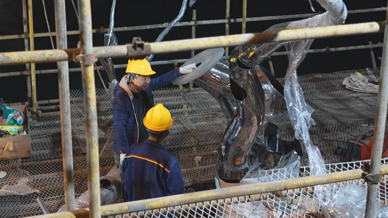 “这株不锈钢杨梅树,是百年东魁杨梅母树的艺术化身。我们特意设计了灯光变幻效果,能完整展现杨梅从粉白色到青绿色,再到鲜红色果实成熟的全过程。”永宁产投集团项目负责人黄鑫说,希望游客在游览石窟奇景的同时,既能直观感受黄岩“中国优质杨梅之乡”的独特魅力,也能通过现场心愿泡泡、许愿笺的飘动,寄托美好期许、收获满满祝福。