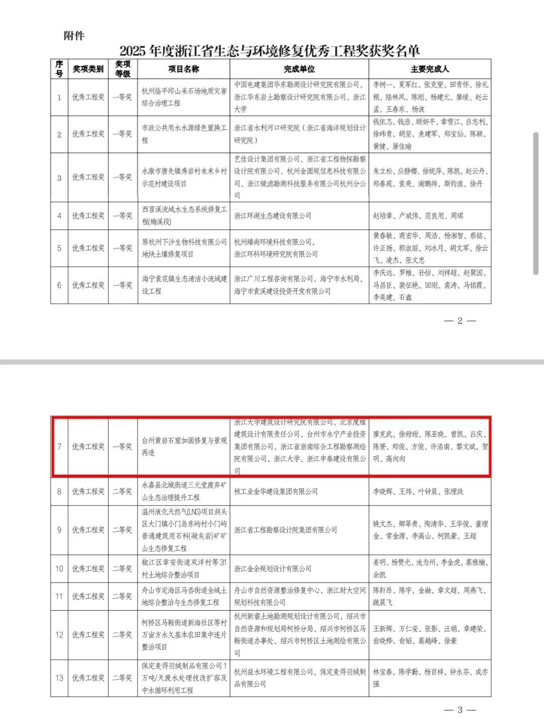 近日,浙江省生态与环境修复技术协会正式公布2025年度浙江省生态与环境修复优秀工程奖评选结果。台州黄岩石窟加固修复与景观再造工程凭借突出的生态效益、创新的修复理念及显著的文旅价值,在众多申报项目中脱颖而出,成功斩获一等奖,成为全省石窟类生态修复与文化活化的示范标杆。
