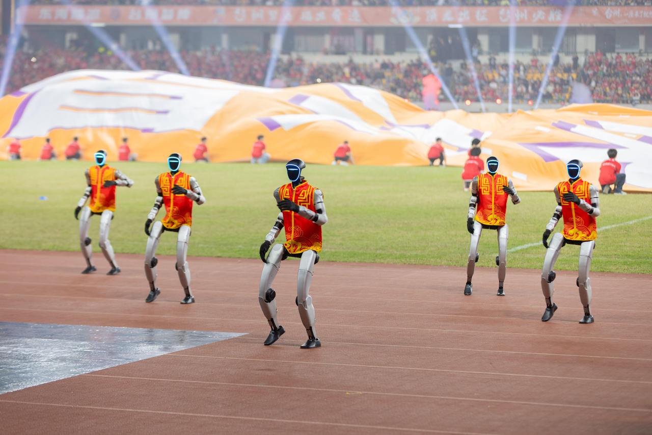 现场展演环节,物流无人机运球从天而降,武术机器人列阵表演,打鼓机器人领擂非遗大鼓……科技与足球、传统与未来,在这一刻同频共振,为观众带来了一场耳目一新的文体盛宴。