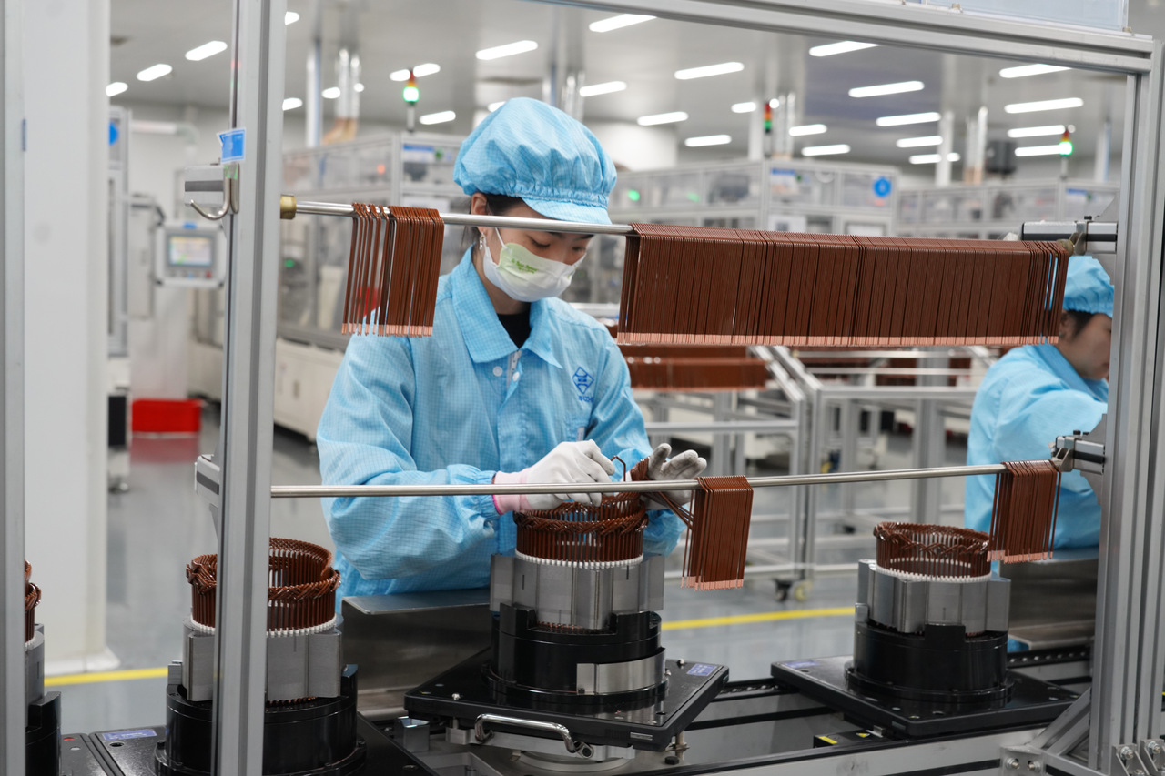 “电机的核心,说白了就是定子和转子两部分。”在一条飞速运转的新能源汽车定子总成产线前,他介绍:“咱眼前这条,就是全自动干活的。”