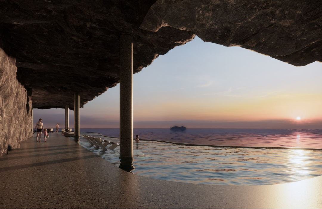 项目依托大陈岛独特的山海风光与红色垦荒精神,采用“旧改+新建”结合模式,以“存量更新+场景激活”双轮驱动,融入“岩壁秘境+海岛体验+度假美学”打造差异化特色度假区。项目规划打造200余间特色客房,配套悬崖无边泳池、无国界餐厅、亲子娱乐、艺术旅拍等多元化度假场景,还可承接轻奢婚礼、会议会展等大型活动。除此之外,双方联手打造的大陈岛时尚沙滩度假酒店也同步推进,构建起海岛双地标度假格局。