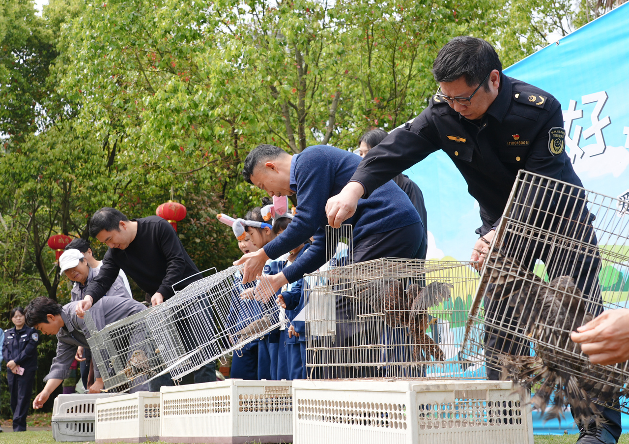 4月15日,台州湾野生动物园在第45届“爱鸟周”期间举办野生动物放归活动,紧扣全国主题“守护飞羽精灵 共绘生态画卷”及浙江省特色主题“翠鸣和合 羽飞华顶”,将红隼、猫头鹰等国家二级保护动物,以及七彩山鸡、斑鸠、黑水鸡和50只和平鸽在内的50余只康复野生动物有序放归自然。