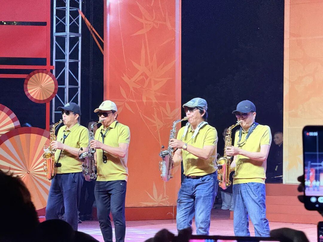 沉浸其中的不只有台下的观众,台上的演奏家们也在各自的音乐世界里。他们的指尖在萨克斯按键上流畅跳跃,与台下的热情同频共振。