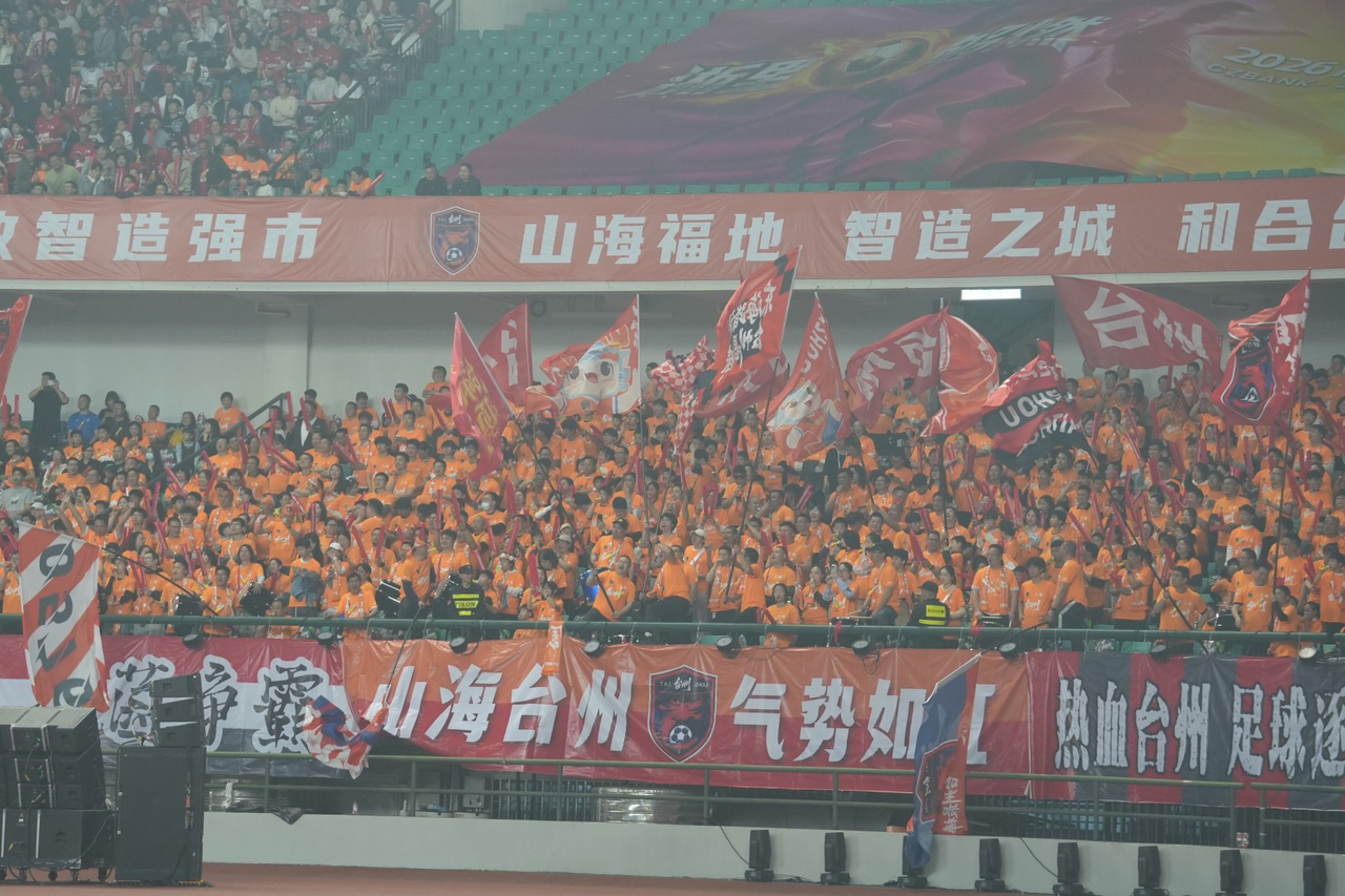 主场氛围,首次实现“集团作战”。团队联合椒江区足协,集结2000余名铁杆球迷组成方阵,同时联动台州市新闻传媒中心,组织1300余人的体展表演团队。现场旗帜翻涌,氛围热烈昂扬。
