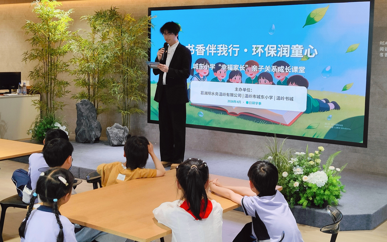 在世界读书日来临之际,4月20日,温岭市城东小学联合中国能建葛洲坝生态环保公司温岭公司、温岭书城,共同举办“书香伴我行·环保润童心”影子体验之亲子共读活动。本次活动以落实“家校社协作”育人机制、深化“幸福家长”亲子关系成长课堂建设为核心,将书香浸润与环保教育相结合,近70名学生、家长与教师齐聚温岭书城,在互动陪伴中传承文明、凝聚亲情、传递环保理念,切实推动家校社协同育人走深走实。