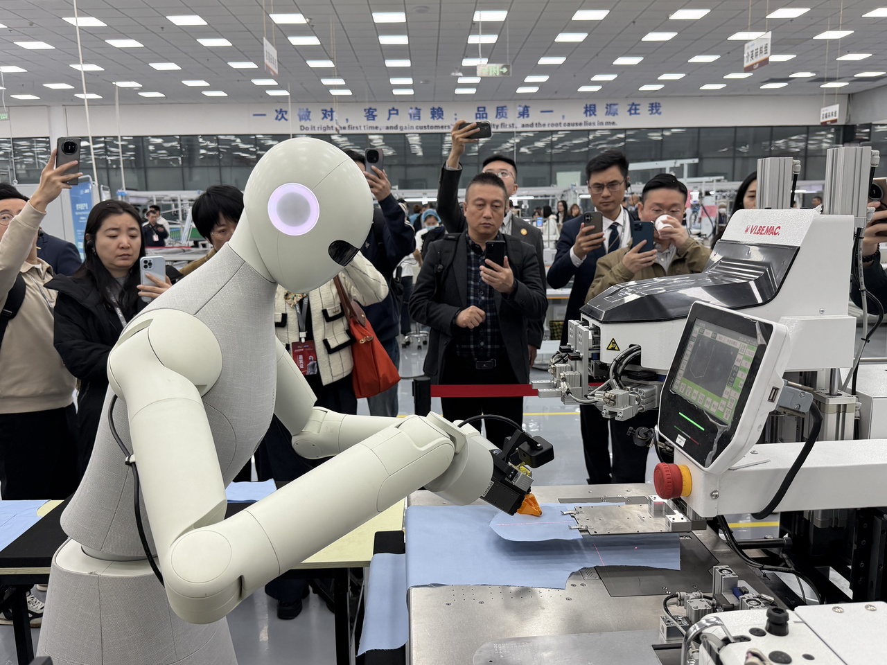 此前,人形机器人仅零散应用于单一工序。本次落地的成套产线,首次实现人形机器人与全套自动化设备联动,搭建起完整无人化生产单元。未来,产线上会有更多智能设备迭代落地,持续推动服装行业向无人化、数字化全面转型。
