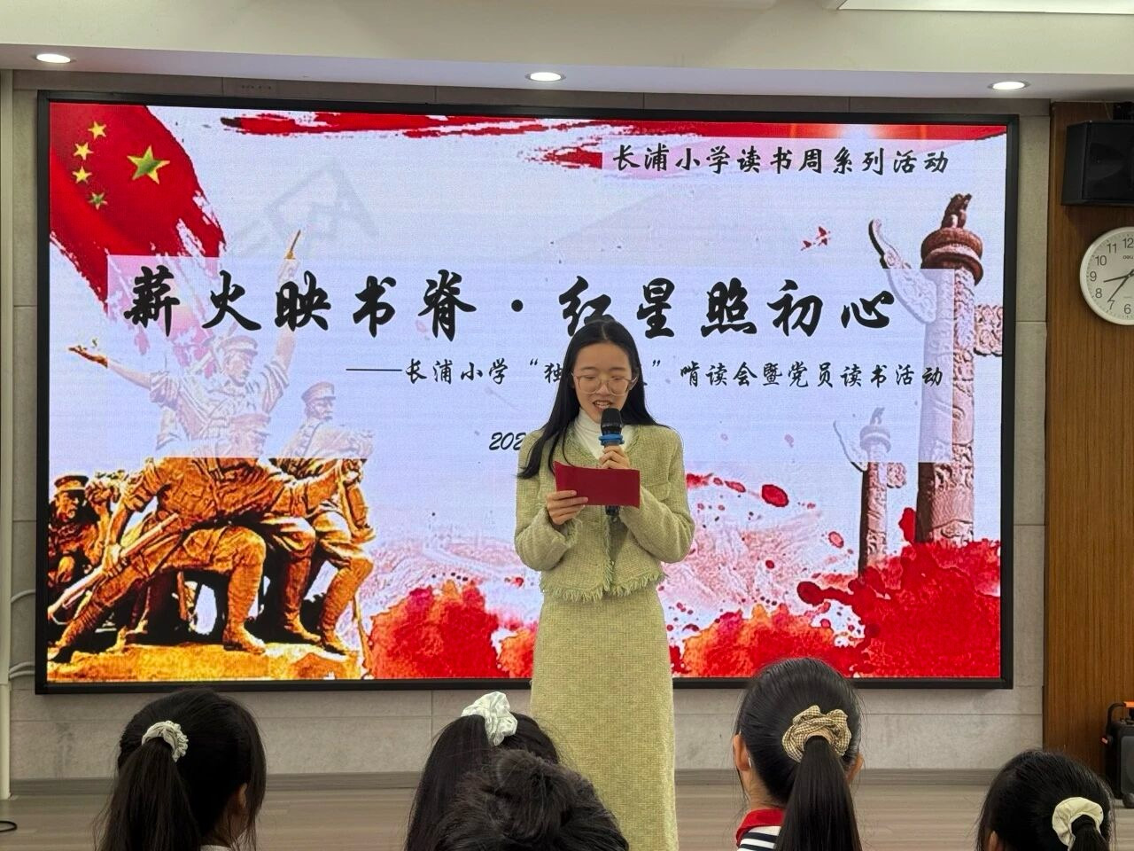 ——教师代表方老师声情并茂地将自己从书中汲取的红色力量讲述给孩子们听,融入了平凡的教育工作中。她说:“让我们一起传承革命精神,汲取奋进力量,以初心担使命,以实干育新人,让红色薪火代代相传。”